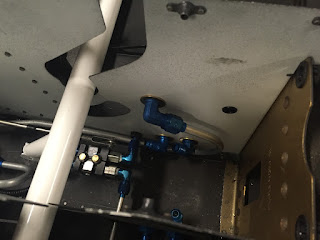 With that, we were able to hook a drill battery up to the flap motor and presto... The flap arm appears to work perfectly!! Wahoo! This is the first electrical part that is permanently installed to the airframe now. Exciting times. We ran the flaps up and down a couple times until the excitement wore off a bit and decided to call it a night. Big day of building today, and all ended up going very well! Tomorrow if the UPS gods are shining on us we should get some more fittings to satisfy our insatiable appetite for Aircraft Spruce packages, and we can continue with the fuel system. Maybe we'll also get to install more of the control system, even the control sticks! 'Stick' around!!